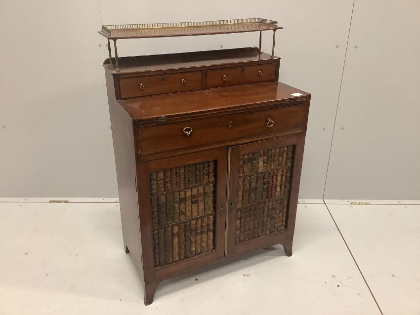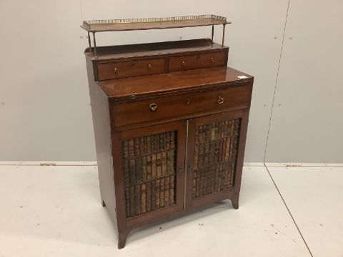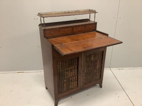 A Regency style mahogany chiffonier with folding writing surface, width 71cm, depth 40cm, height 104cm