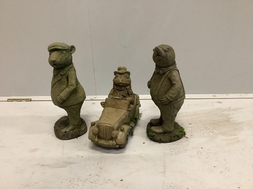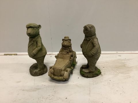 A trio of Wind in The Willows simulated stone figures, largest height 31cm