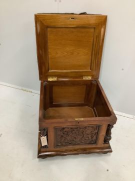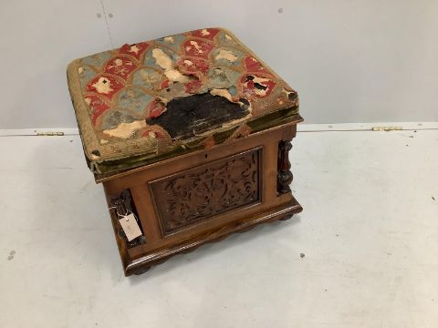 A Victorian walnut box seat stool, width 49cm, depth 50cm, height 47cm