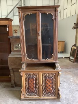 A Continental walnut side cabinet, width 86cm, depth 40cm, height 190cm