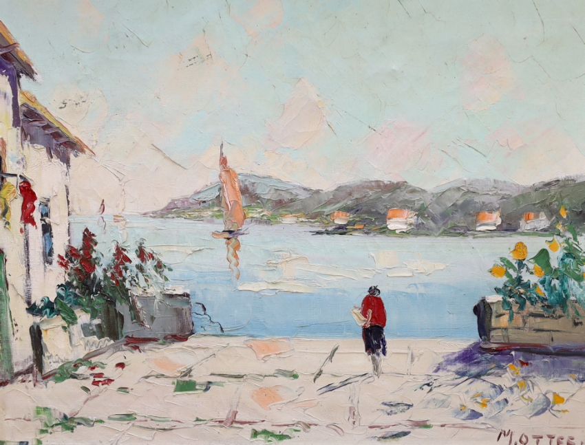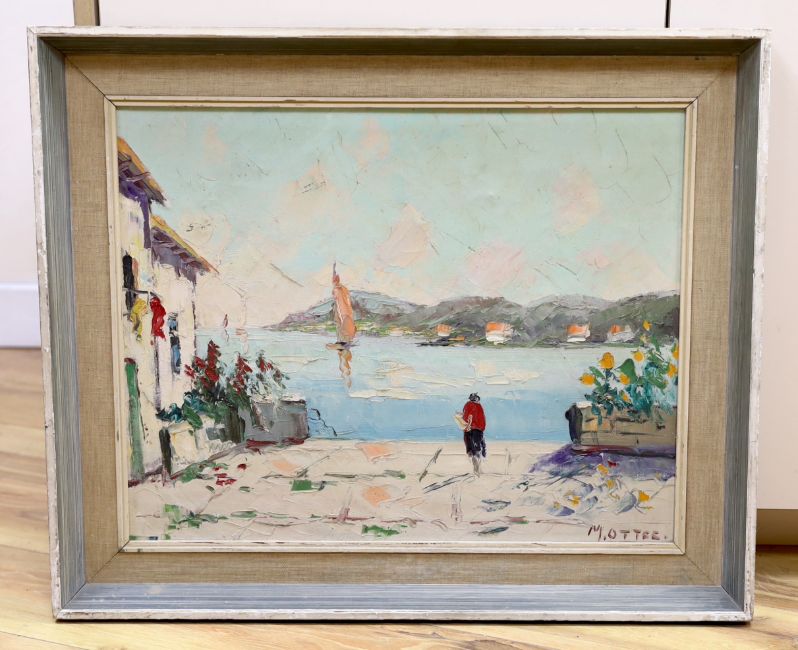 Marc Ottee (Dutch, 1898-1982), oil on canvas, Italian lake scene, signed, label verso, 39 x 49cm