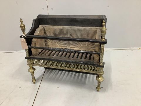 A Regency style brass mounted cast iron fire grate, width 50cm, depth 21cm, height 48cm