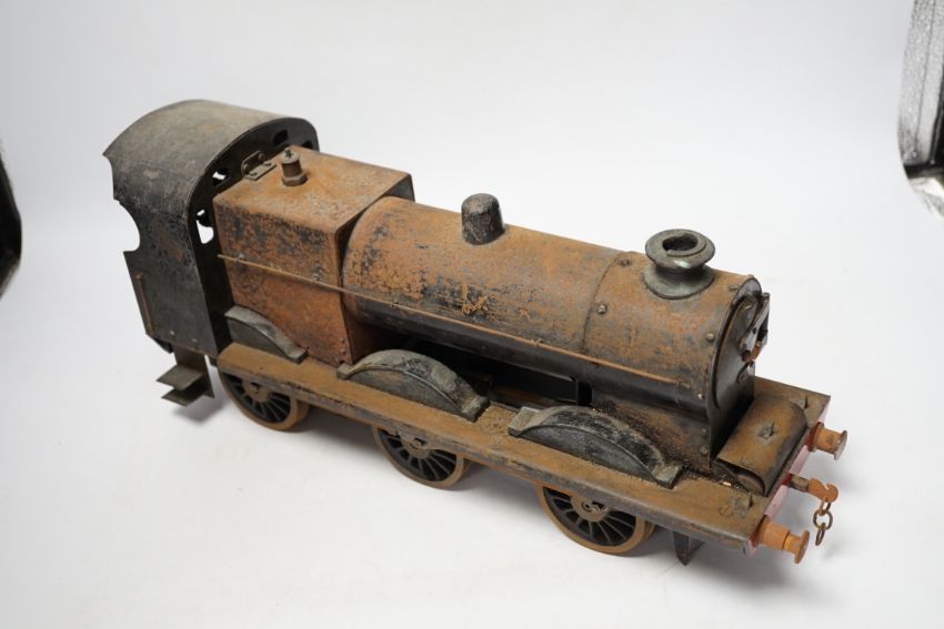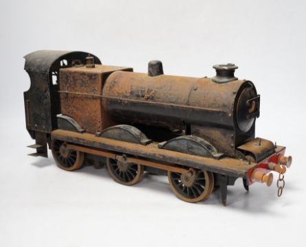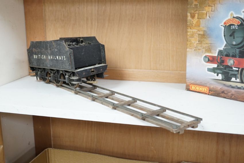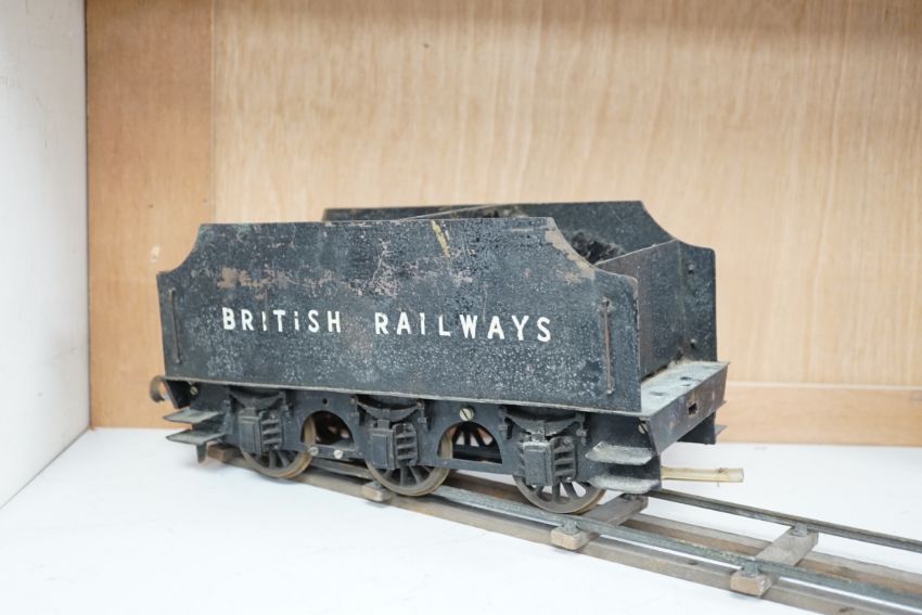 A paraffin/meths fired 2.5 inch live steam BR class 4F 0-6-0 tender locomotive, single inside cylinder, six wick burner, safety valve and whistle under running board, 72cm long over the buffers