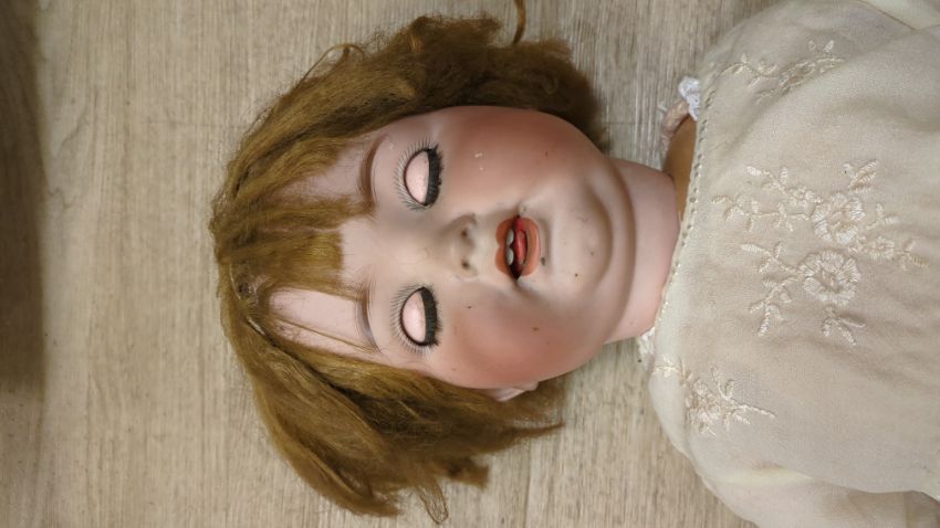A Cuno Otto Dressel doll, bent limb, body overpainted, fingers missing on left hand, 56cm