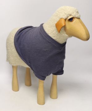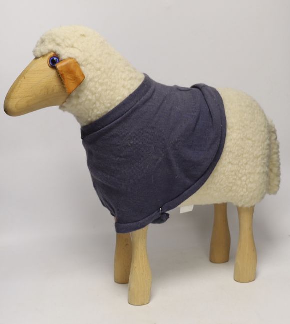 A Hanns-Peter Krafft sheep for Mayr Wool, beech body with wool and leather details, 46cm high