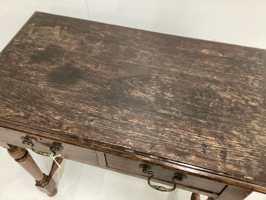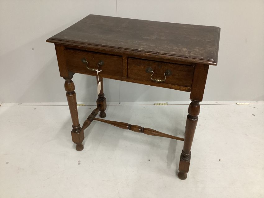 An early 20th century oak two drawer side table, width 76cm, depth 44cm, height 76cm