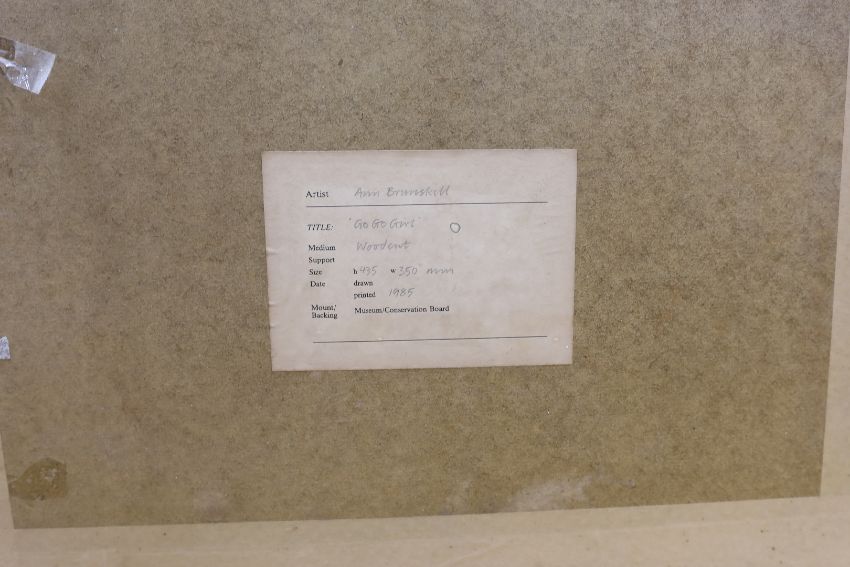 Ann Brunskill (1923-2018), woodcut, 'Go Go Girl', signed in pencil, 44 x 35cm