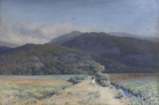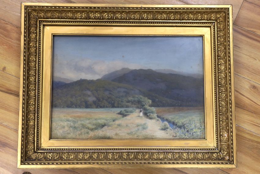Herbert Moxon Cook (1844-1928), watercolour, Mountainous landscape with figure, signed, 34 x 50cm, ornate gilt framed
