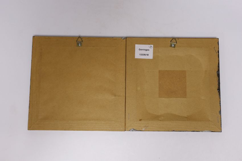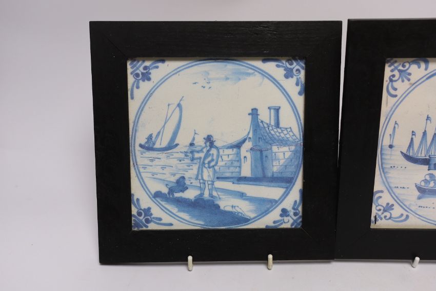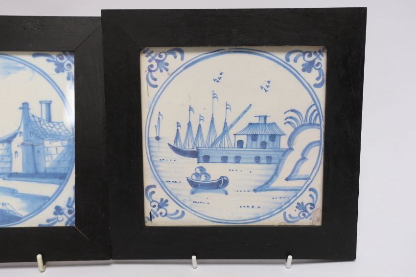 Two framed prints of 18th century Delft blue and white tiles