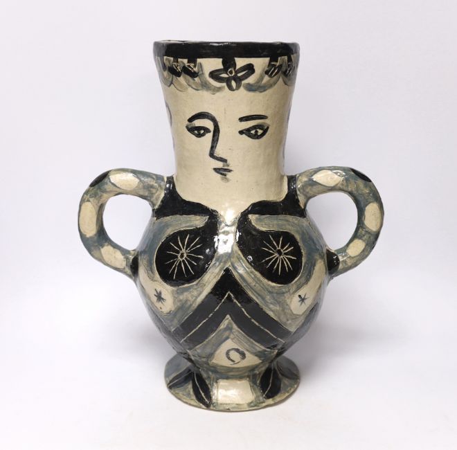 A studio pottery vase, inspired by Picasso, 35cm