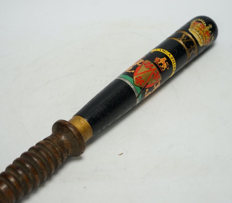 Re-painted Lancashire police truncheon, 45cm in length