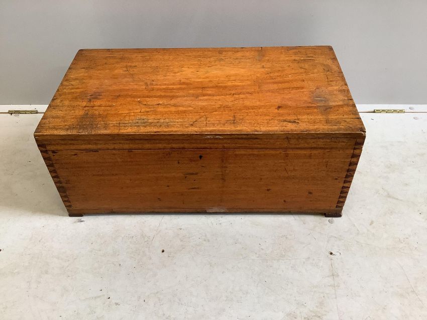 A small rectangular teak trunk, width 76cm, depth 40cm, height 31cm