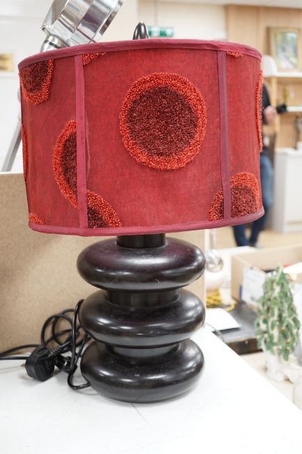 A pair of 1970's turned and ebonised wood table lamps, 57 cm high