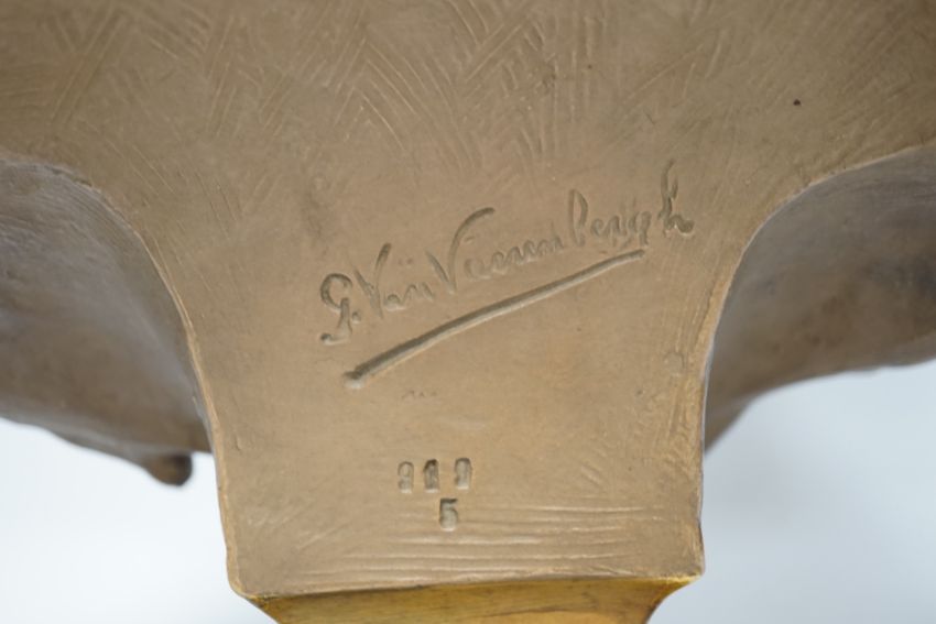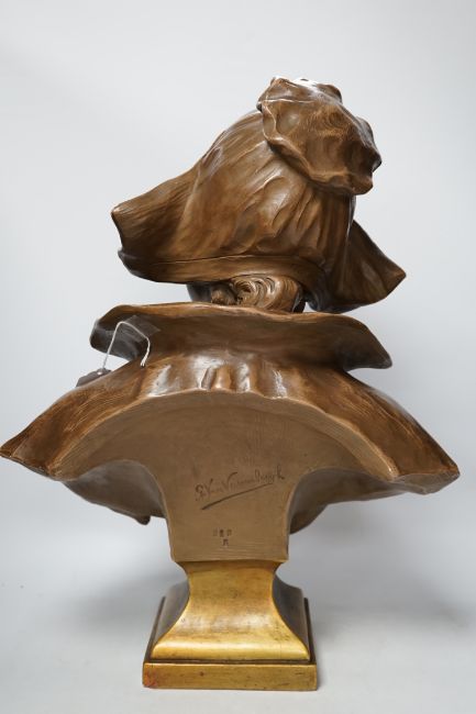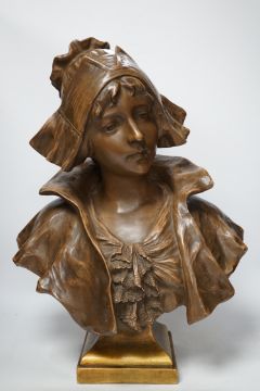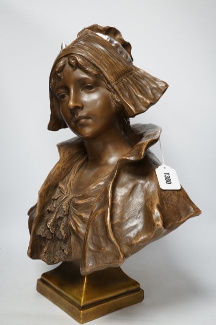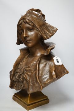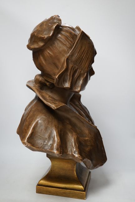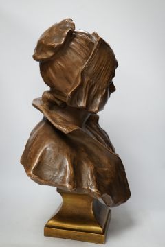 A bronzed terracotta bust of an early 20th century Dutch girl, 55cm high