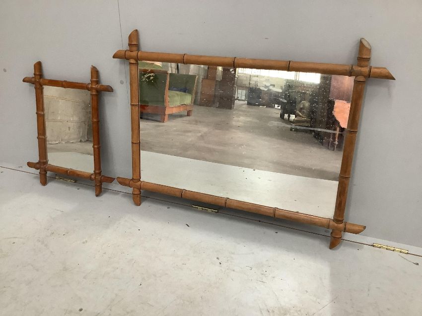 Two early 20th century French rectangular faux bamboo wall mirrors, larger 94cm, height 67cm