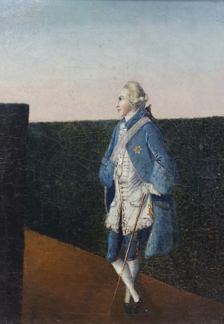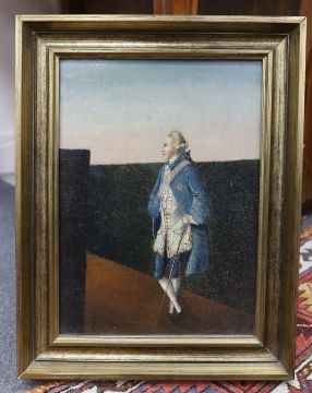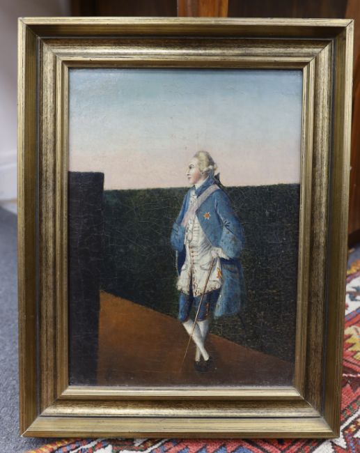 19th century English School, naive oil on canvas, Portrait of King George III, 34 x 25cm