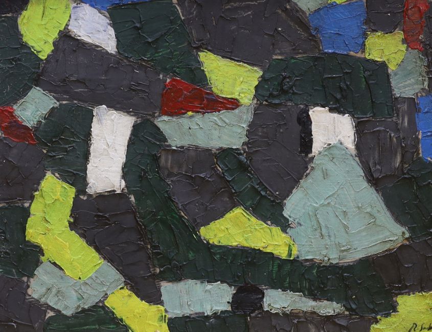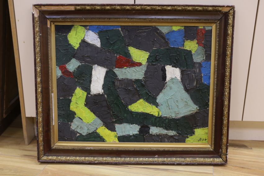 Impasto oil on board, abstract composition, Geometric shapes, 50 x 66cm