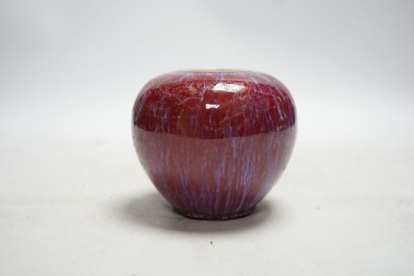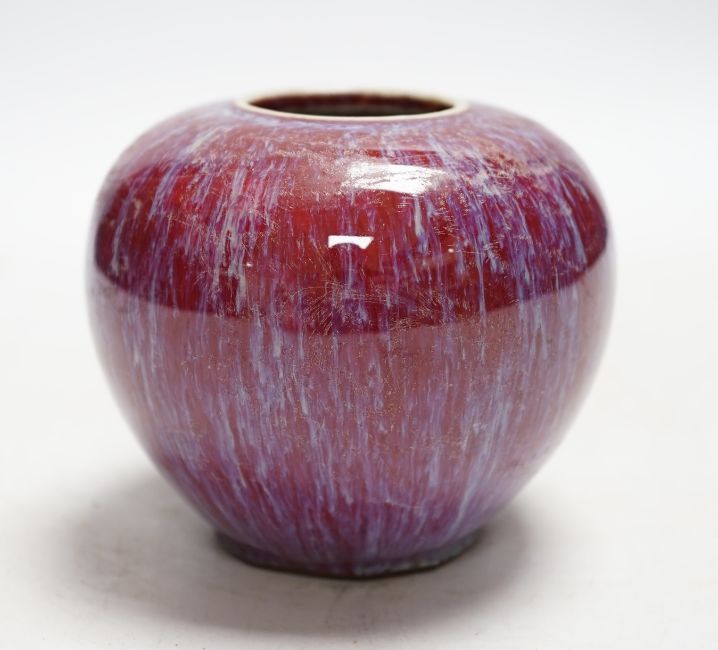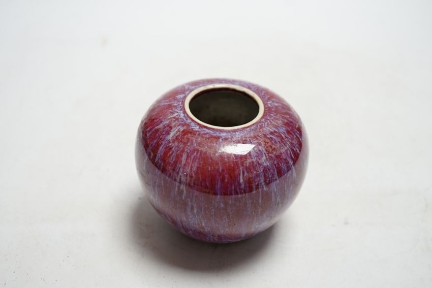 A Chinese flambé glazed brush washer, 9cm No visible chips or cracks. There is scuffing and scratches to the body of the vase.