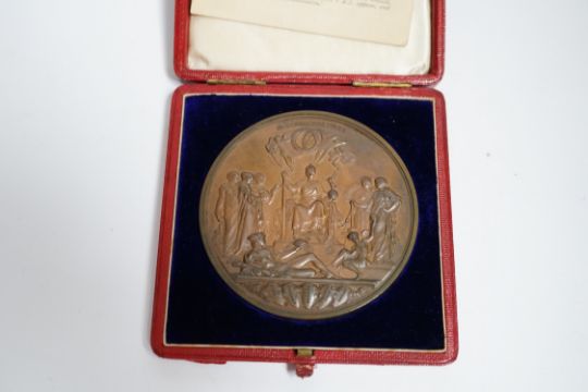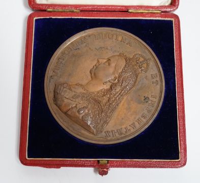 A Queen Victoria commemorative cased 1887 bronze Jubilee medal