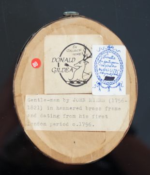 looking to sinister, with ribbon-tied hair en queue and lacework shirt