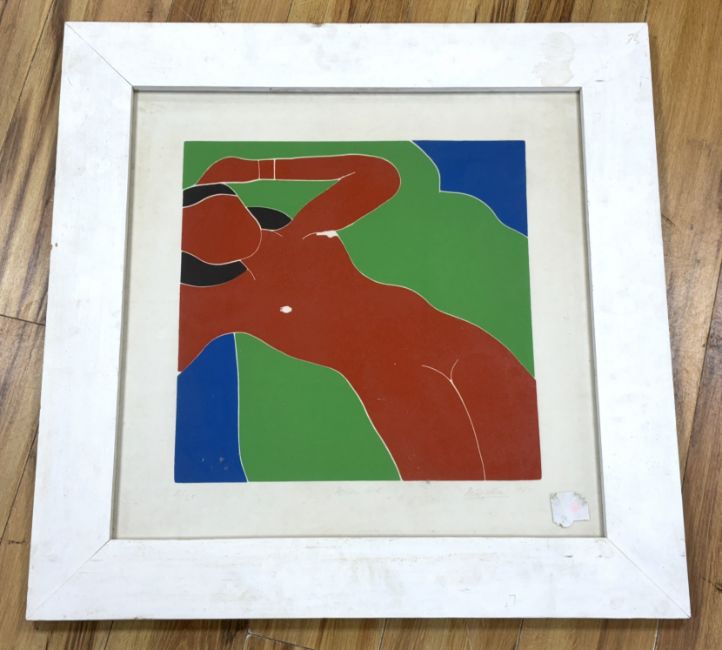 Philip Sutton, (RA, b.1928), colour silkscreen print, ‘Persian girl’, signed and dated 1967 in pencil, limited edition 8/25, 60 x 60cm***CONDITION REPORT*** No damage as such seen; glass is dirty inside and out so discolouration of the mount is difficult to assess.  Pencil inscriptions clear.  Frame dirty with one dent to top rail, central.  Image 45.5x45cm; frame 78.5x78.5cm. PLEASE NOTE:- Prospective buyers are strongly advised to examine personally any goods in which they are interested BEFORE the auction takes place. Whilst every care is taken in the accuracy of condition reports, Gorringes provide no other guarantee to the buyer other than in relation to forgeries. Many items are of an age or nature which precludes their being in perfect condition and some descriptions in the catalogue or given by way of condition report make reference to damage and/or restoration. We provide this information for guidance only and will not be held responsible for oversights concerning defects or restoration, nor does a reference to a particular defect imply the absence of any others. Prospective purchasers must accept these reports as genuine efforts by Gorringes or must take other steps to verify condition of lots. If you are unable to open the image file attached to this report, please let us know as soon as possible and we will re-send your images on a separate e-mail.