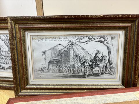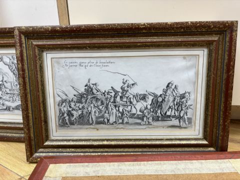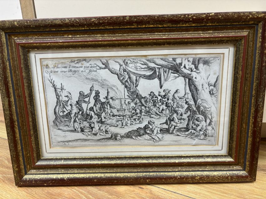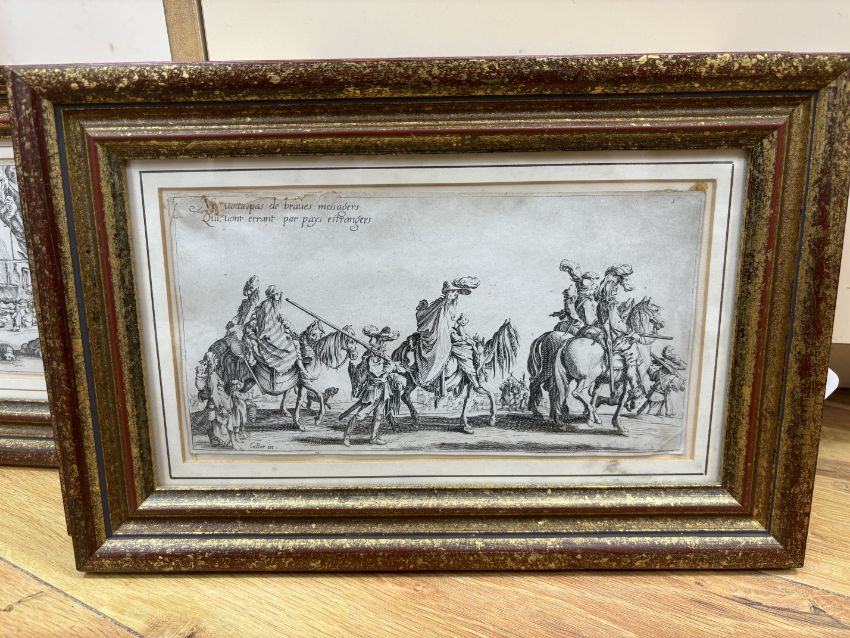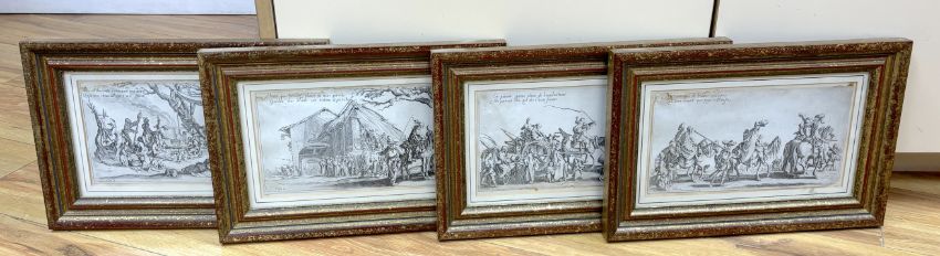 After Jacques Callot (French, 1592-1635), set of four etchings, ‘Les Bohemiens’, signed in plate, each 12 x 23cm