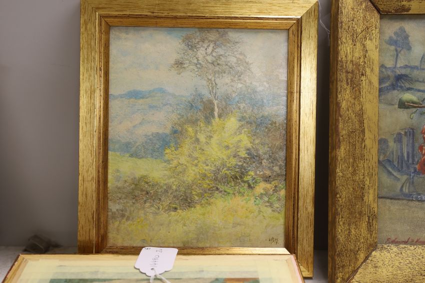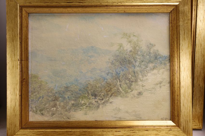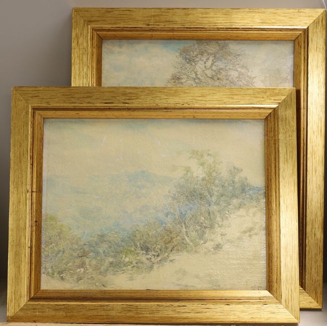 Edward Steel Harper (1878-1951), two oils on board, Landscapes including ‘A Winter Morning’, signed with monogram and dated 1919, one with ink inscription verso, 17 x 22cm and 24 x 19cm