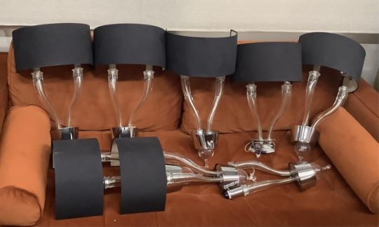 A set of seven Pandora twin branch wall lights by Barovier and Toso height including shades 52cm.