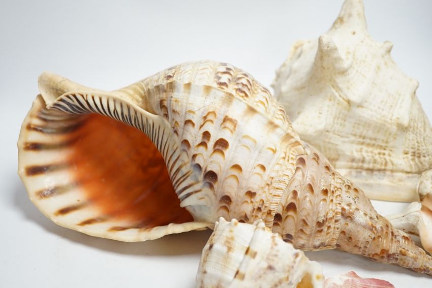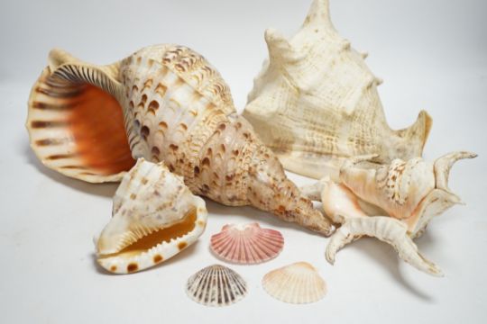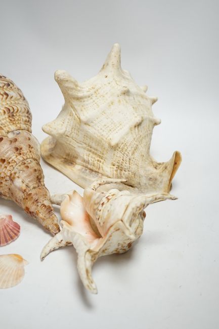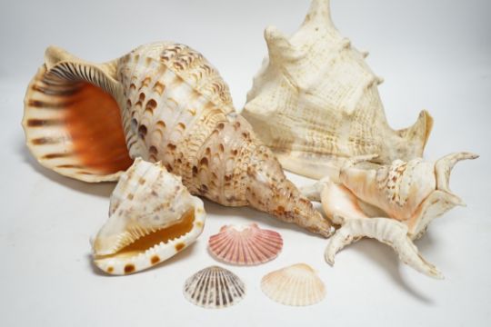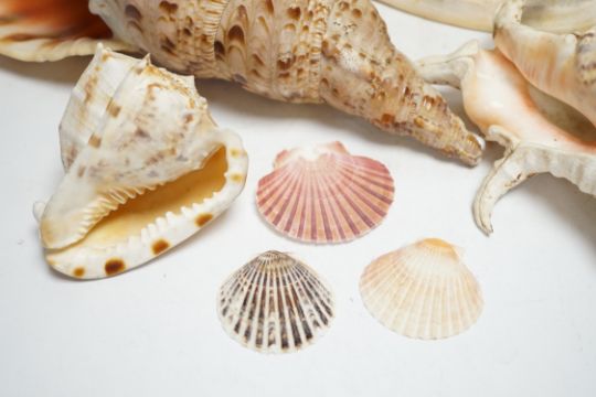 A collection of twenty shells including three large examples, largest 39cm wide
