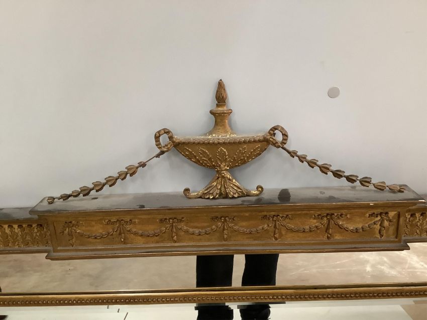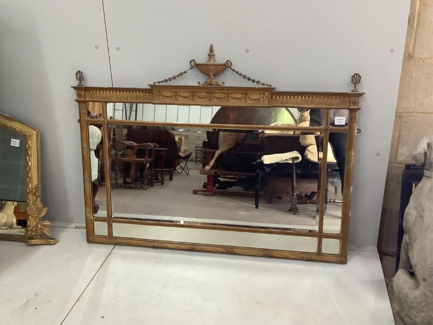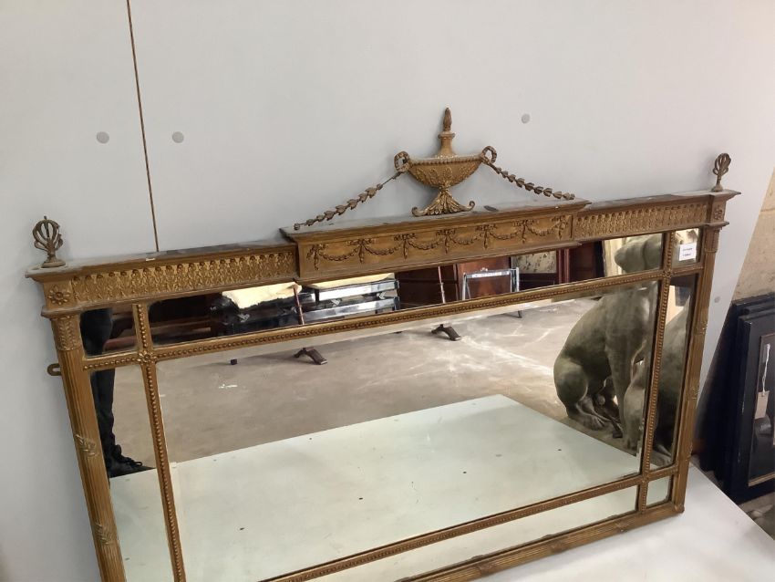An Adam design gilt framed overmantel mirror, width 126cm, height 92cm. Condition - fair