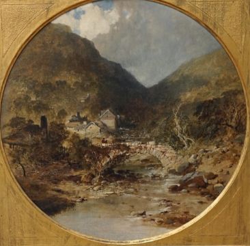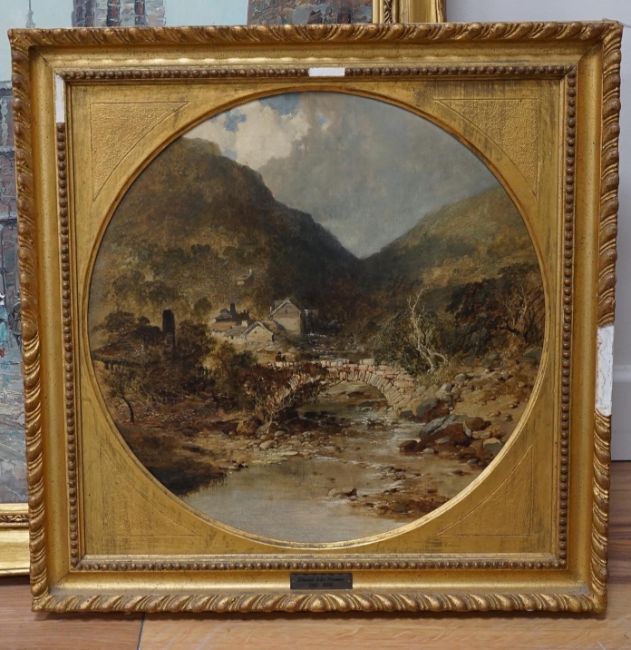 Edmund John Niemann (1813-1876), oil on canvas, tondo, Trefriw, near Llanwrist, North Wales, diameter 37cm, applied plaque to the gilt frame. Condition - fair, some losses to the frame