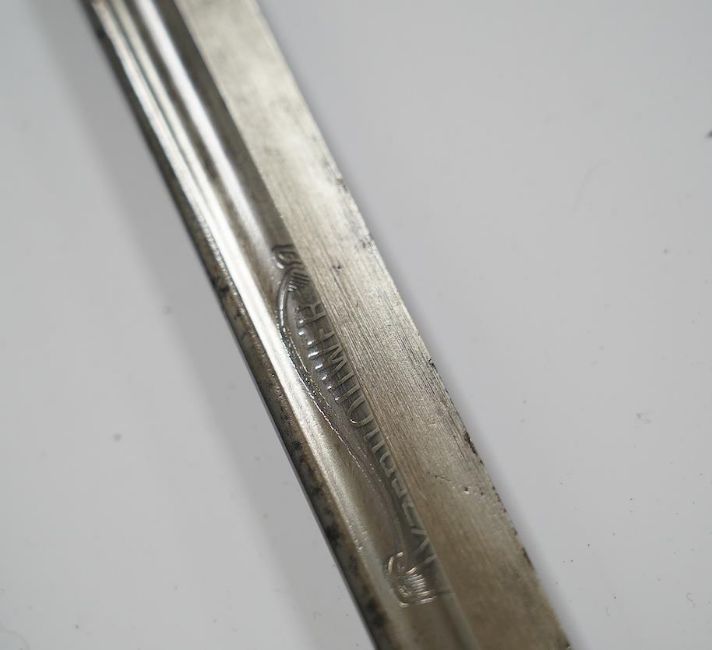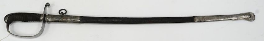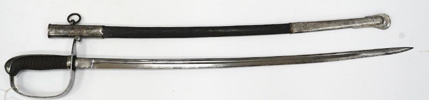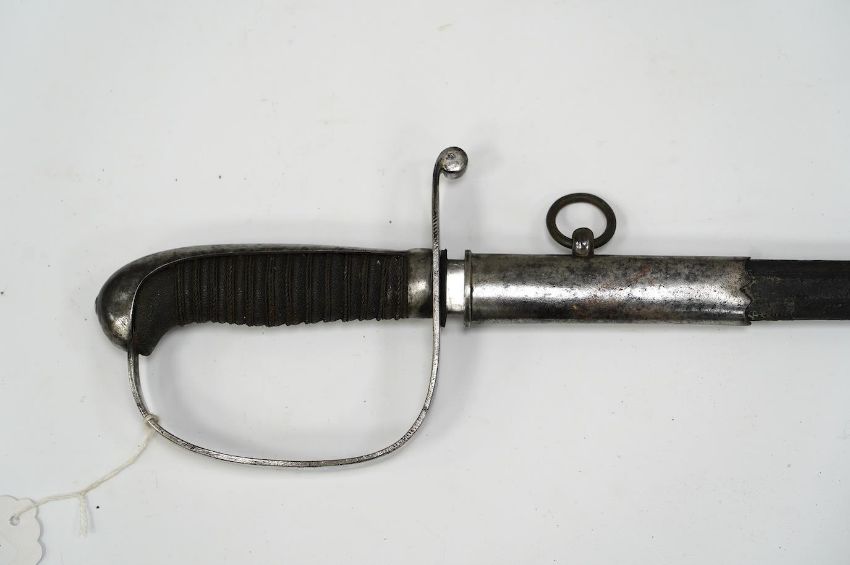 A Dutch police officer’s sword, D-shaped iron guard in its steel mounted leather scabbard, blade 69cm. Condition - fair, heavily cleaned * Due to new safety regulations and legal restrictions with ParcelForce and Royal Mail, we are unable to pack or send swords and bladed items through postal service. Collection in person or courier service is recommended *