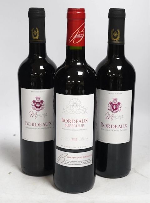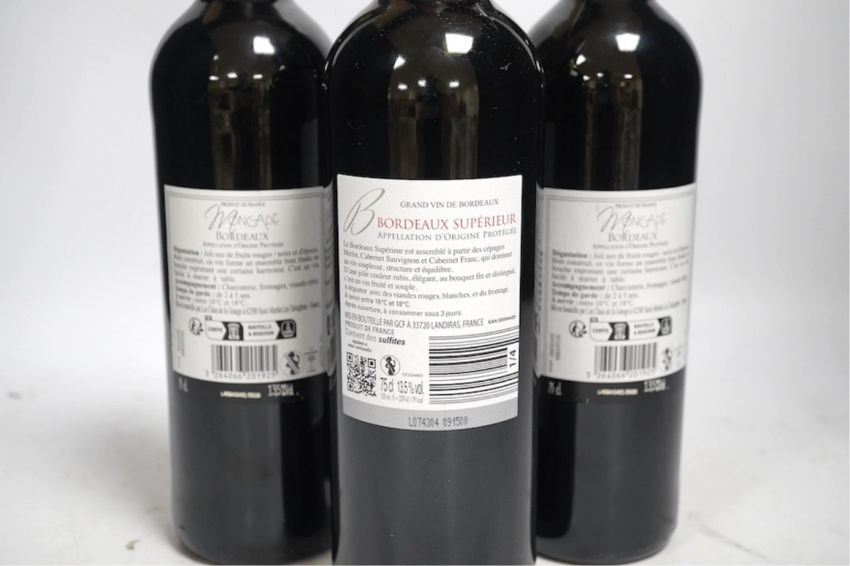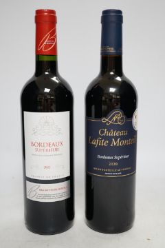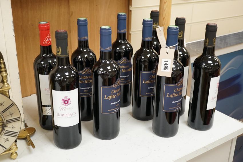Twelve bottles of wine to include six bottles of Chateau Lafite Monteil, four bottles of Bordeaux Superieur 2022 and four bottles of Moncade Bordeaux. Condition - good, storage unknown