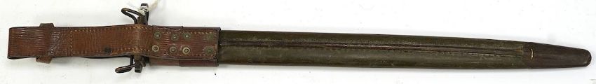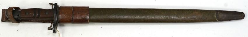 An American 1917 Remington bayonet, based on the earlier British bayonet of 1913, adapted for the 0.3 to 0.6 calibre rifles, with its leather covered scabbard. Condition - good * Due to new safety regulations and legal restrictions with ParcelForce and Royal Mail, we are unable to pack or send swords and bladed items through postal service. Collection in person or courier service is recommended *