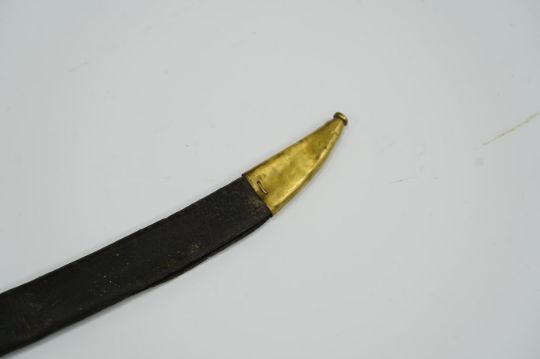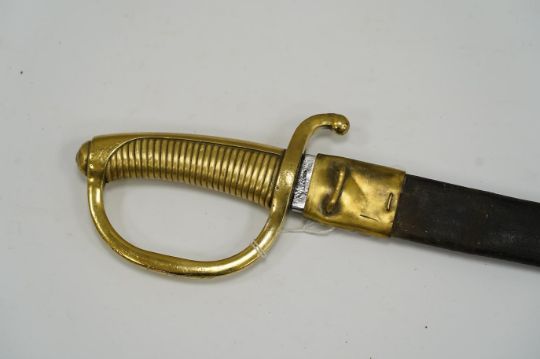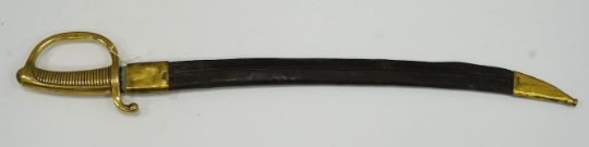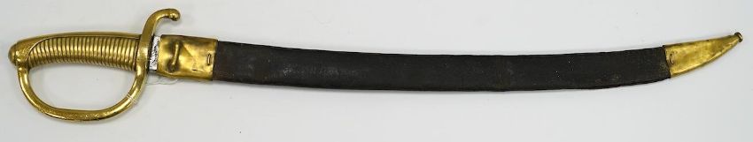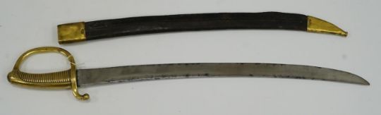 A French briquet cast D-shaped brass hilt in its brass mounted leather scabbard, blade 59.5cm. Condition - fair, blade heavily cleaned * Due to new safety regulations and legal restrictions with ParcelForce and Royal Mail, we are unable to pack or send swords and bladed items through postal service. Collection in person or courier service is recommended *