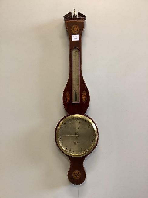 An early 19th century inlaid mahogany wheel barometer, height 100cm. Condition - good