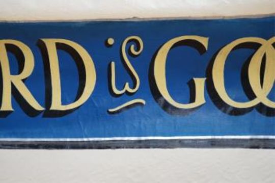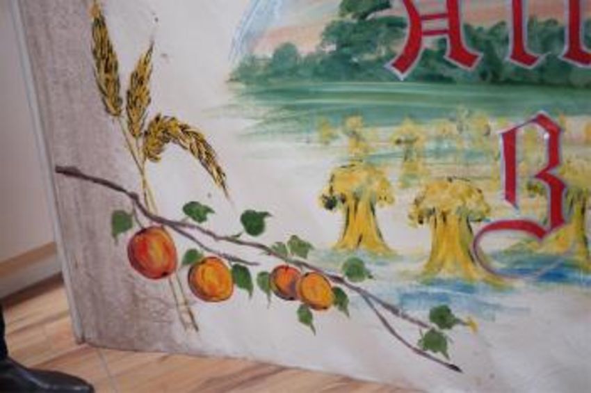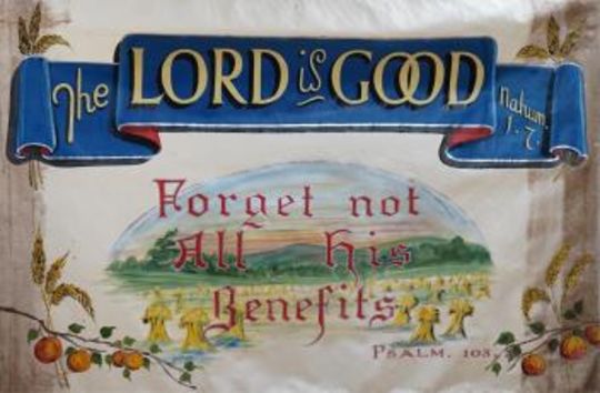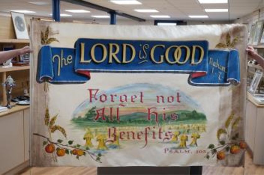 A large hand painted Baptist Revival banner, probably American, 135cm high. Condition - fair