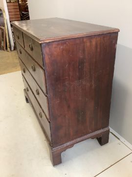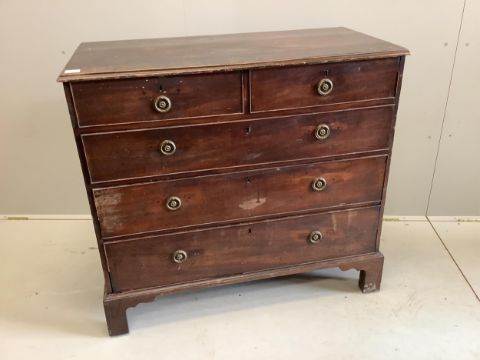 A George III mahogany five drawer chest, width 107cm, depth 51cm, height 98cm. Condition - poor