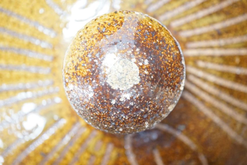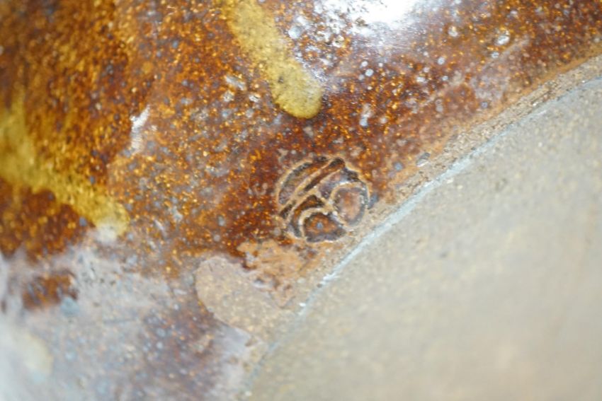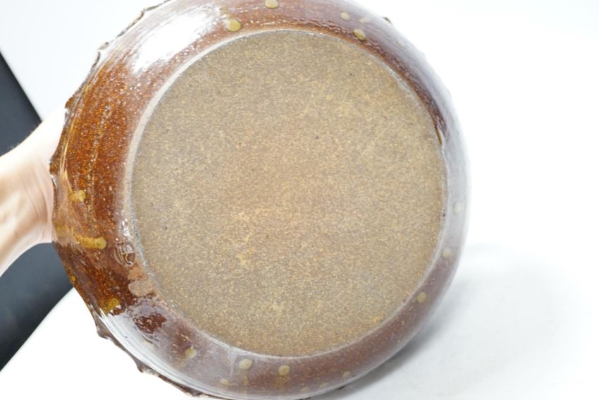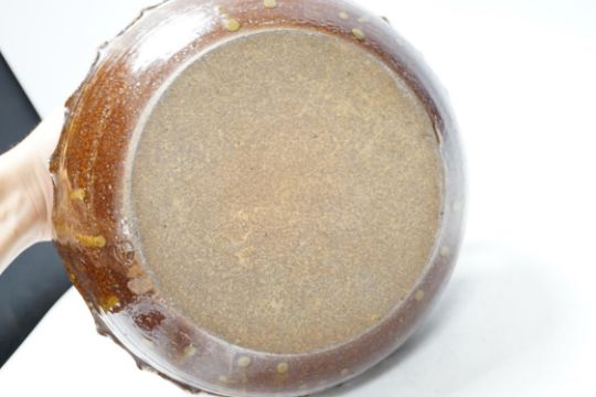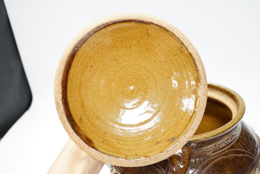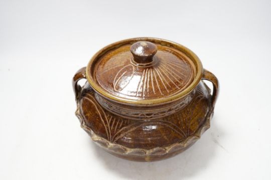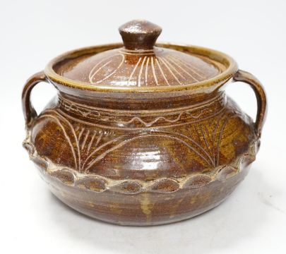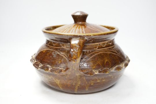 A Wenford Bridge stoneware jar and cover, Gwari, by Michael Cardew, 18cm. Condition - fair, some wear to glaze.