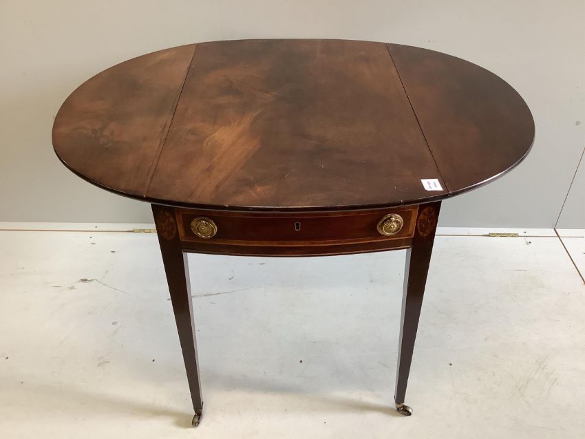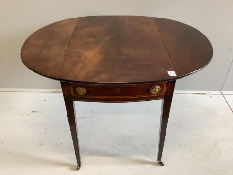 A George III mahogany Pembroke table, width 86cm, depth 57cm, height 73cm. Condition - fair