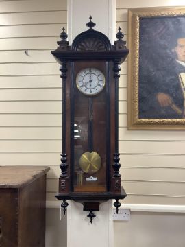 A late 19th century Vienna style regulator wall clock, height 120cm. Condition - fair