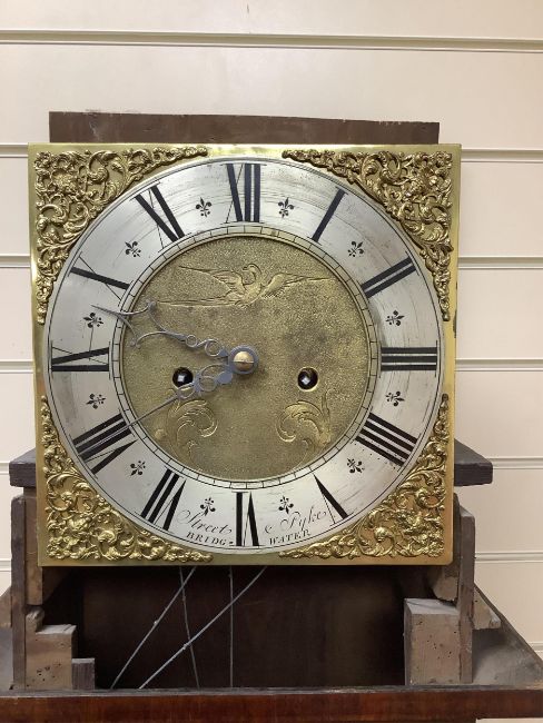 Street & Pyke of Bridgwater. A George III oak and mahogany eight day longcase clock, height 195cm. Condition - fair