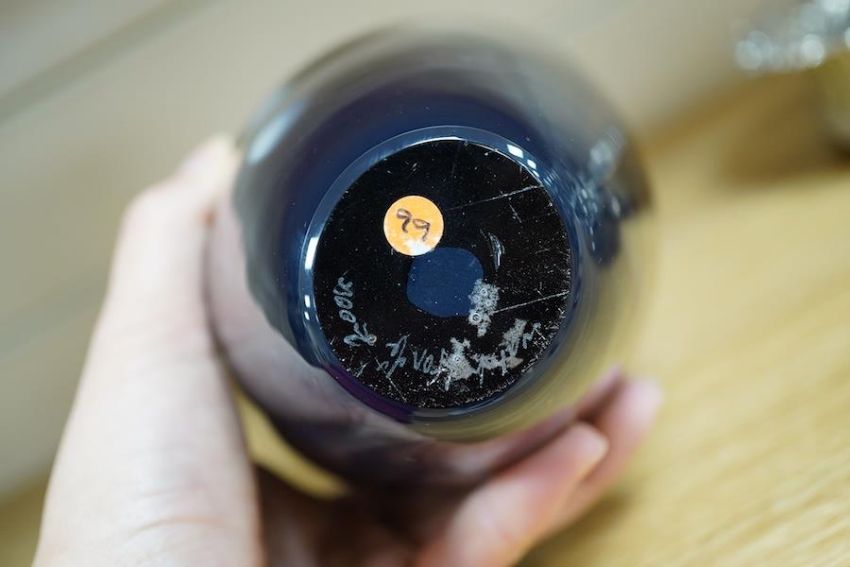 A modern Studio glass vase 'Black Hole' vase, signed 'Walsh Ifon.. 2004', 24cm. Condition - good