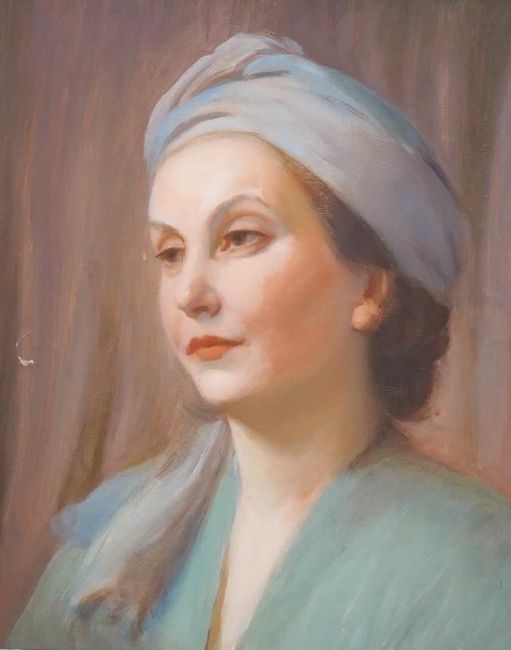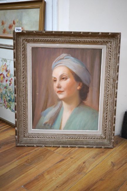 20th century School, oil on canvas, Portrait of a lady wearing a turban, unsigned, 45 x 36cm. Condition - fair, scuff to centre left