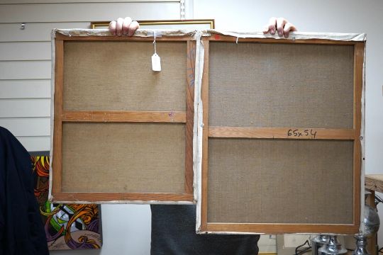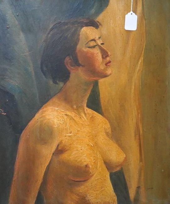 Lilos Bug?, oil on canvas, Study of a nude female, signed, together with a similar work, indistinctly signed, both unframed, largest 65 x 54cm. Condition - fair, would benefit from a clean