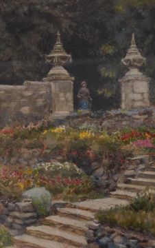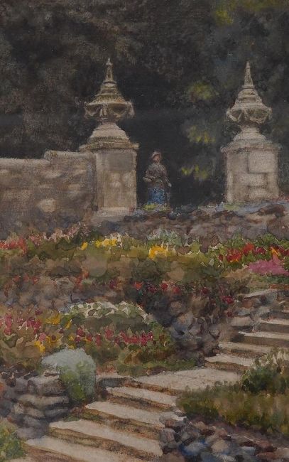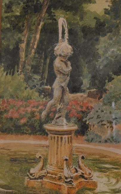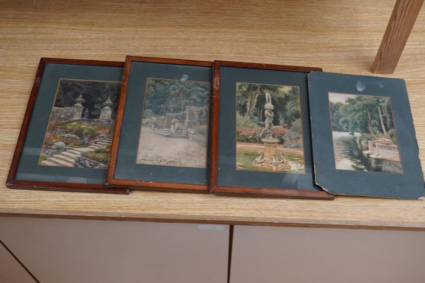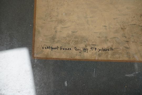 S.P. Cockerell, set of four watercolours, Westport House views including the fountain, September 1st 1917, each inscribed, 21 x 13cm, three framed. Condition - fair, would benefit from a clean