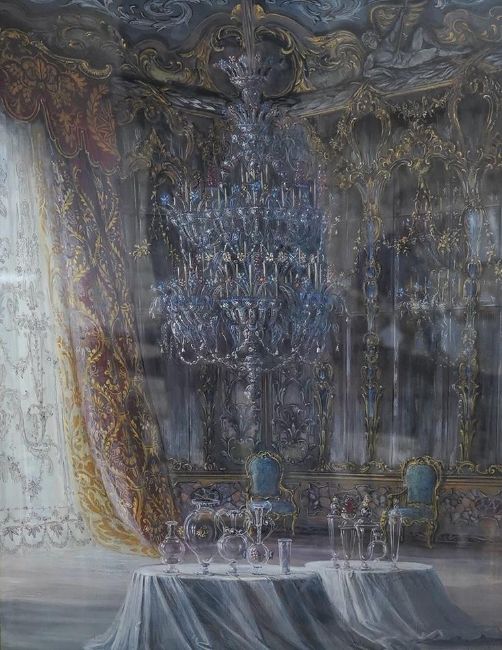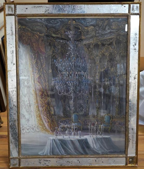 Thierry Bosquet, (Belgian, b.1937), mixed media, Extravagant interior scene, signed, housed in a Venetian glass frame, Ex. Stephanie Hoppen Gallery, 64 x 49cm. Condition - good