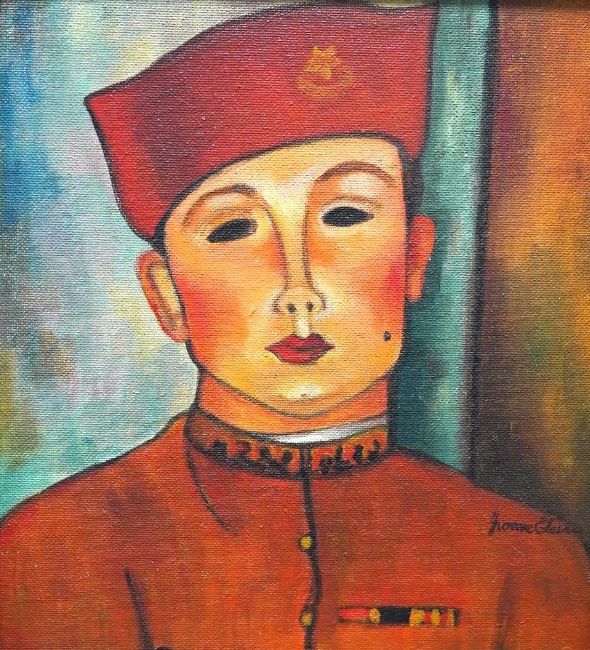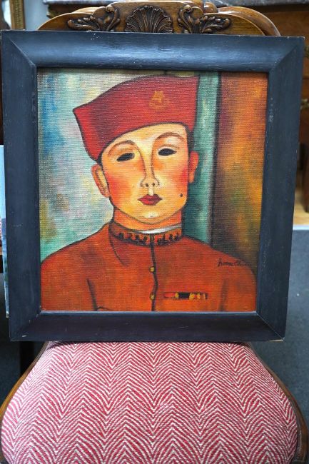Yvonne Eleini, oil on canvas board, Portrait of a Russian soldier in military dress, signed, 41 x 38cm. Condition - good