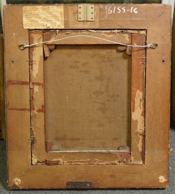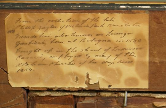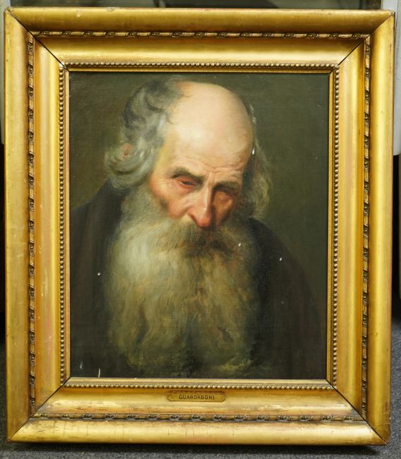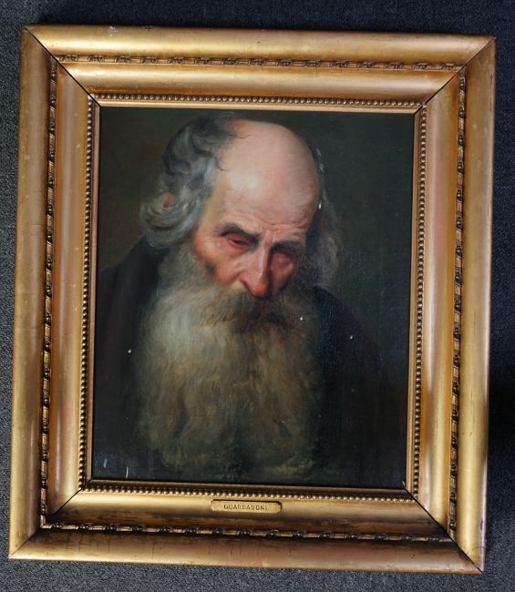 Oil on original canvas which remains tight, a few white splash marks over the work otherwise good condition but for slight stretcher marks showing, housed in an old gilt frame with some losses with an attribution to Guardaboni (possibly Guardassoni Italian, 1819-1888?), old hand inscribed label verso