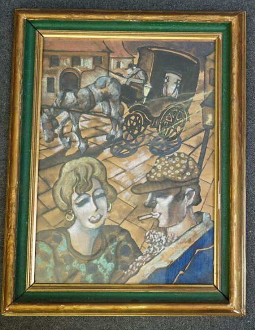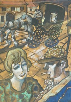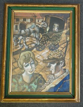 Street scene with couple and horse cart